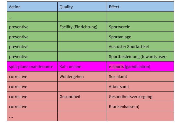 Dem Grunde nach geht es um Wartung. Wartung eines Systems zur Wahrung der Gesundheit durch Erholung. Wir bezeichnen alle Aktivitäten, die in der Natur stattfinden und nicht wegen einer Krankheit oder allgemeiner ausgedrückt Insuffizienz unternommen werden als präventive Maßnahmen.